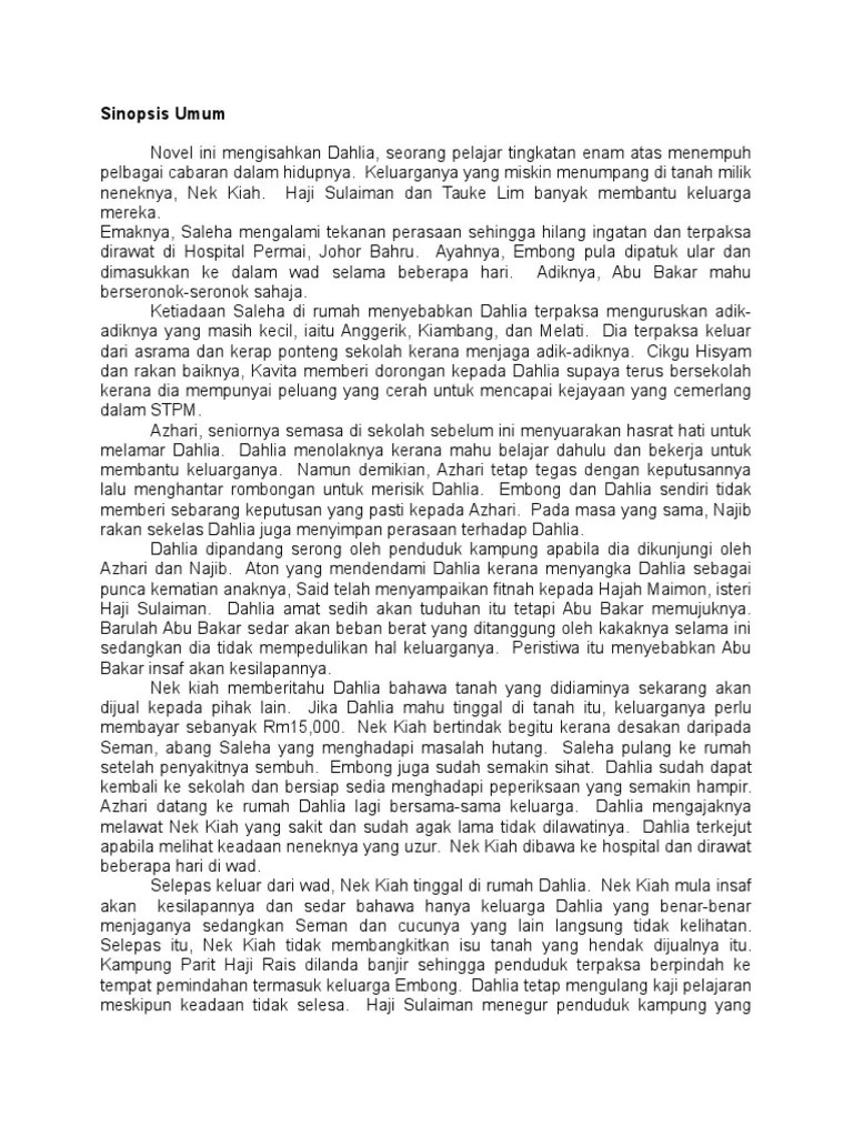 Aina nadhirah binti a rozey. Tema novel ini ialah kecekalan seorang remaja menempuh cabaran hidupnya. Berdasarkan novel yang saya kaji, songket berbenang emas karya khairuddin ayip. Nota bergambar kajian unsur sastera dalam novel termasuk sinopsis, tema, persoalan, watak dan perwatakan, latar (masa, tempat, masyarakat), . Dahlia tetap mengutamakan pelajarannya dengan meminjam nota dan bertanyakan . Berikutnya nota tema, persoalan, sinopsis, plot, watak perwatakan, latar, nilai dan pengajaran novel ini. Dia sanggup ponteng sekolah kerana ingin . Berdasarkan sebuah novel yang anda pelajari, jelaskan dua persoalan kegigihan yang terdapat dalam novel tersebut.